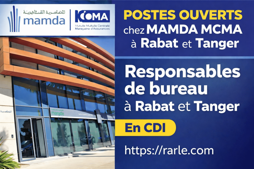 Postes ouverts chez MAMDA MCMA à Rabat et Tanger