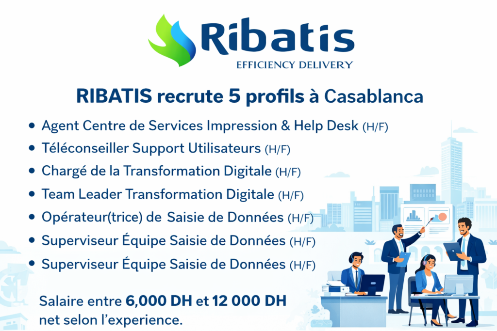 • Salaire entre 8 000 DH et 12 000 DH net selon l’expérience.