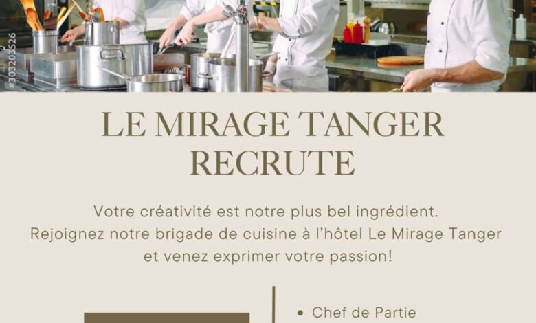 À seulement 20 minutes de l’aéroport international de Tanger et du centre-ville, et à proximité du Royal Golf Club, l’établissement propose un environnement alliant confort, raffinement et qualité de service. Dans le cadre du renforcement de sa brigade de cuisine, Le Mirage Tanger recrute plusieurs profils.